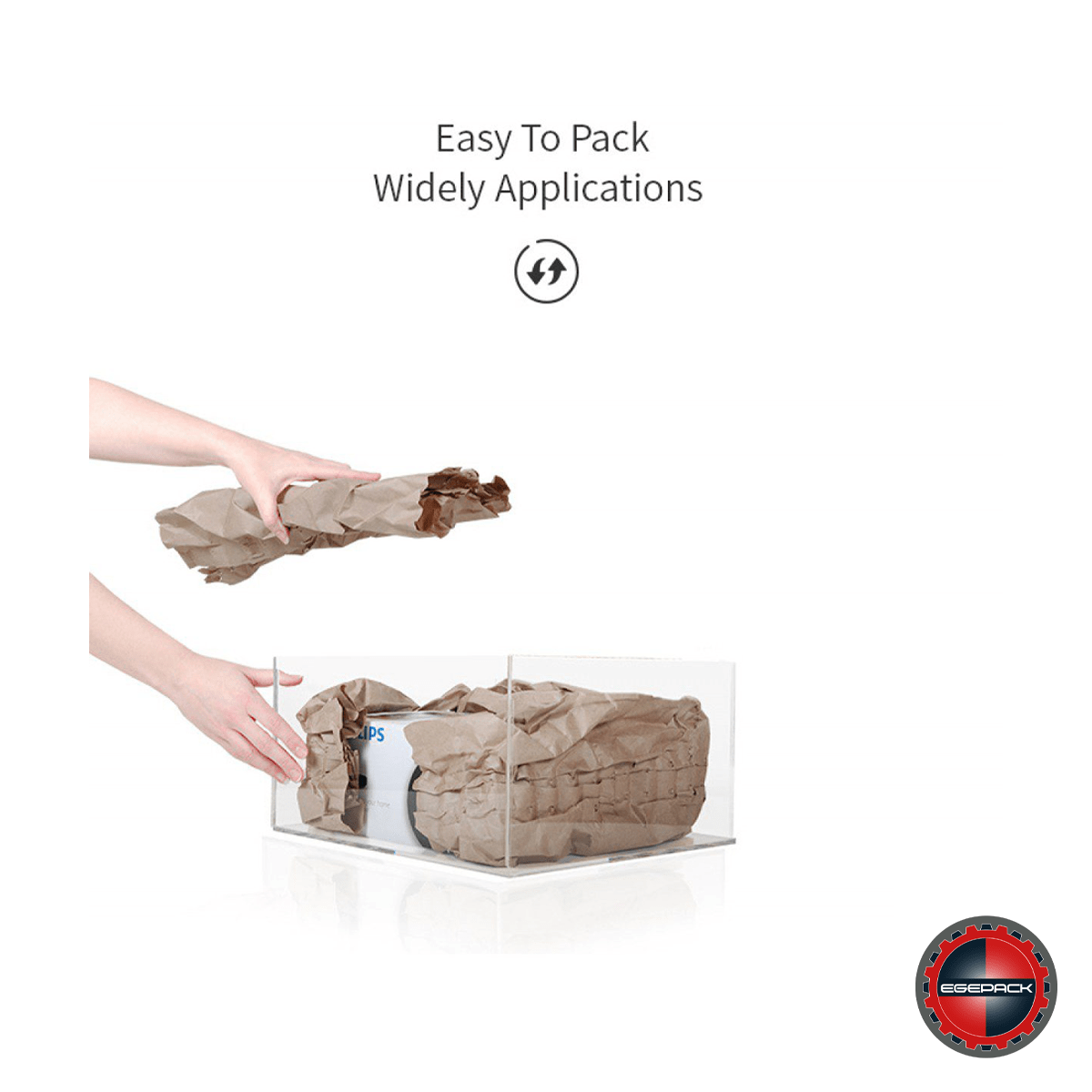 • Çok Yönlü Koruma: Makine, kağıt yastıkları farklı uzunluk ve katmanlarda üreterek dolgu, sarma, tamponlama ve sabitleme gibi çeşitli paketleme ihtiyaçlarını karşılar. Düzensiz şekilli ve paketlemesi zor ürünler için idealdir.
