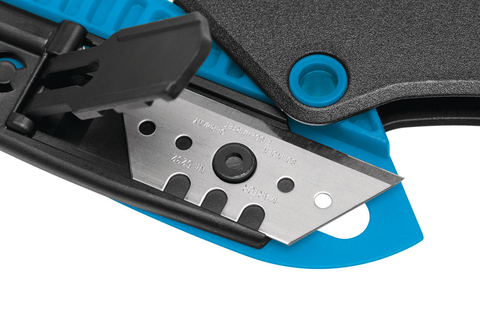 - Güvenlikten ödün vermez! Kolu bıraktığınız anda (veya kesim malzemesinden ayrılır ayrılmaz) kesici uç otomatik olarak gövdenin içine geri çekilir. Bu, kesilme yaralanmalarına karşı en yüksek önleyici tedbirdir.
