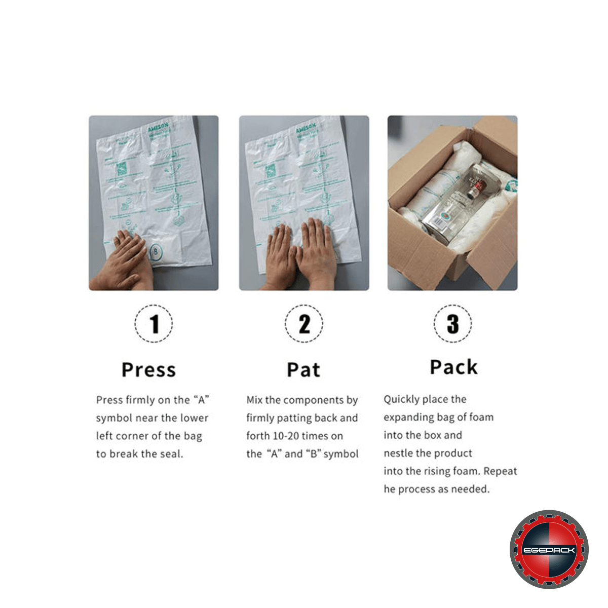Bu sistemin en büyük avantajı, elle anında aktive edilebilmesidir. Herhangi bir makineye veya özel ekipmana ihtiyaç duymadan, poşetin içindeki kimyasalları elinizle aktive edebilir ve köpüğün saniyeler içinde ürününüzün şeklini almasını izleyebilirsiniz. Bu hızlı ve kolay yöntem sayesinde, ister düzenli ister düzensiz olsun, her türlü ürününüz için özel tasarlanmış koruyucu bir yastık oluşturabilirsiniz.
